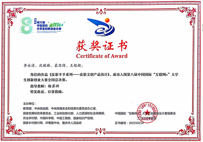 中國(guó)甘肅網(wǎng)7月12日訊(西北角·中國(guó)甘肅網(wǎng)記者 余守萱 通訊員 郭海霞)近日,從中國(guó)國(guó)際“互聯(lián)網(wǎng)+”大學(xué)生創(chuàng)新創(chuàng)業(yè)大賽組委會(huì)傳出喜訊,由環(huán)縣第二中學(xué)楊蘇洲老師指導(dǎo),學(xué)生李永清、沈琪琪、慕思倩、王超超四人共同創(chuàng)作完成的作品《皮影羊羊系列——皮影文創(chuàng)產(chǎn)品設(shè)計(jì)》,成功入圍第八屆中國(guó)國(guó)際“互聯(lián)網(wǎng)+”大學(xué)生創(chuàng)新創(chuàng)業(yè)大賽全國(guó)總決賽。