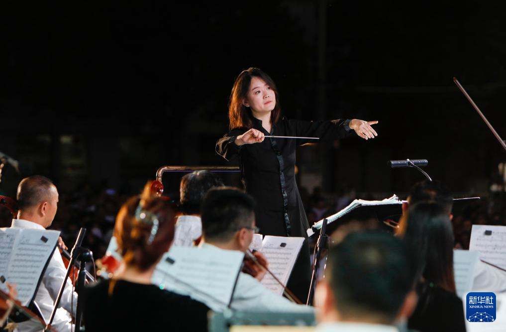 7月31日,甘肅交響樂(lè)團(tuán)首席指揮王璐在指揮演奏。新華社記者 方欣 攝