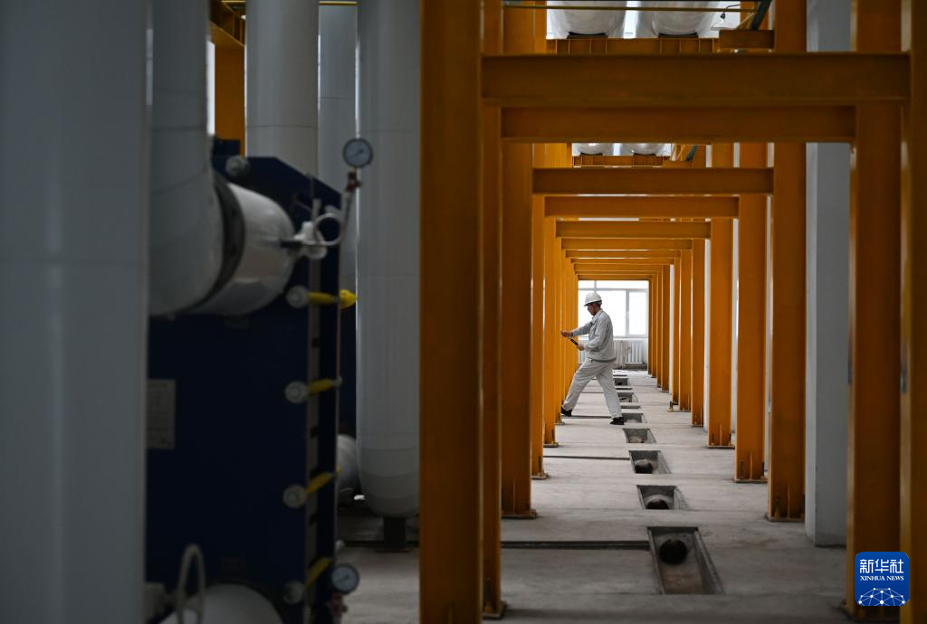 8月10日,工人在中國(guó)能建承建的張掖經(jīng)開區(qū)零碳熱源廠施工。新華社記者 金良快 攝