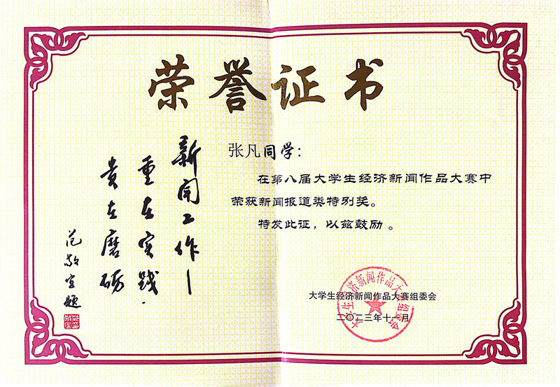 全國大學生經濟新聞作品大賽于2009年始辦,每兩年舉辦一屆。本屆大賽由中國經濟傳媒協(xié)會和北京工商大學共同主辦,共收到全國33所高校的近300件作品,經過嚴格公正的評選,來自全國18所高校的30篇作品獲獎,其中新聞報道類獲獎作品28件、評論類獲獎作品2件。