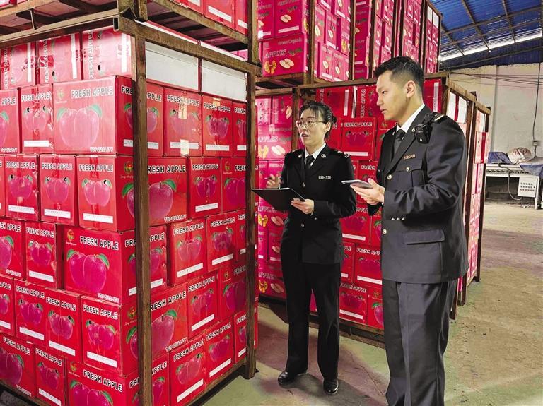 中國(guó)甘肅網(wǎng)12月13日訊 據(jù)蘭州晚報(bào)報(bào)道 12月12日,記者從蘭州海關(guān)獲悉,日前經(jīng)天水海關(guān)檢驗(yàn)放行,由天水嘉威商貿(mào)有限責(zé)任公司生產(chǎn)的26噸鮮蘋(píng)果順利出庫(kù)裝運(yùn),經(jīng)公路運(yùn)輸發(fā)往越南。大約72小時(shí)后,該批鮮蘋(píng)果將進(jìn)入越南消費(fèi)市場(chǎng)。