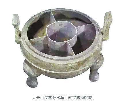 這里說的“五熟釜”,內(nèi)分數(shù)格,開煮時,中間爐火熾烈,四周湯羹沸騰,可以同時煮熟多種食物。很像北京涮羊肉鍋和重慶九宮格的初級合體。