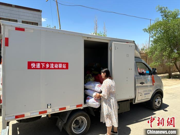 2023年7月14日,民眾在敦煌快遞下鄉(xiāng)流動(dòng)驛站取件。(資料圖) 戴文昌 攝