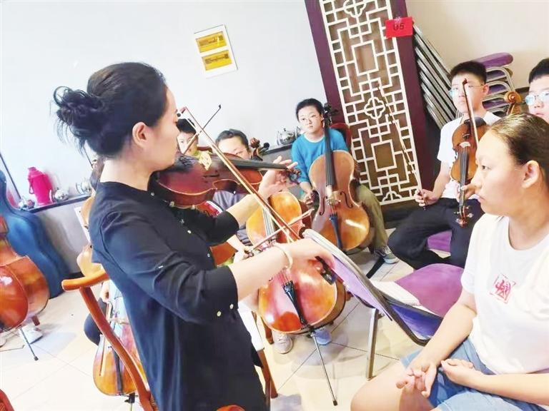 中國甘肅網8月26日訊 據(jù)(蘭州晨報報道 奔流新聞·蘭州晨報記者 裴強)近日,教育部白名單競賽“2023-2024學年全國青少年音樂素養(yǎng)大賽”全國總決賽在山東省濟南市閉幕。蘭州市少年宮交響樂團弦樂分團的20名學員經過初賽、復賽層層選拔,以省賽一等獎佳績代表蘭州市參加“2023-2024學年全國青少年音樂素養(yǎng)大賽”決賽,最終斬獲演奏類西洋樂團合奏賽項中學組三等獎。圖為學員們在排練