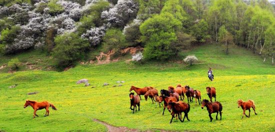 關山在很長一段時間一直是中國重要的牧馬之地。據(jù)史書記載,大將衛(wèi)青、霍去病北征匈奴,曾從關山征集戰(zhàn)馬14萬匹,足見當時這里牧馬業(yè)的繁盛。然而現(xiàn)在,馬的蹤跡只是景區(qū)的點綴,要想看到萬馬奔騰的場面,要去河西走廊的山丹軍馬場。