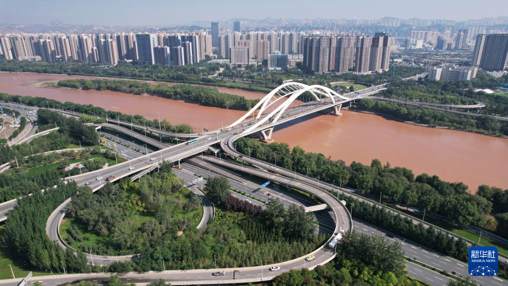 這是黃河蘭州段的雁灘黃河大橋(9月24日攝,無人機(jī)照片)。新華社記者陳斌攝