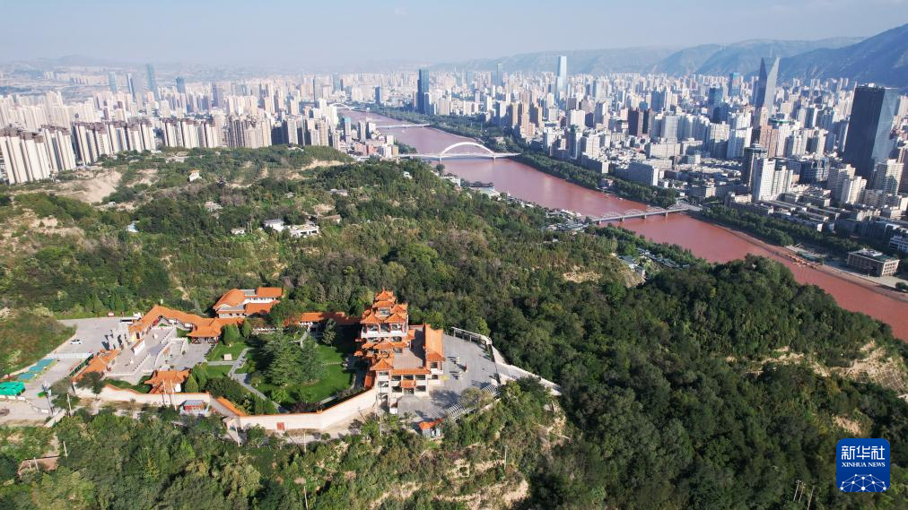 這是位于黃河蘭州段南岸的黃河樓(9月26日攝,無人機(jī)照片)。新華社記者陳斌攝