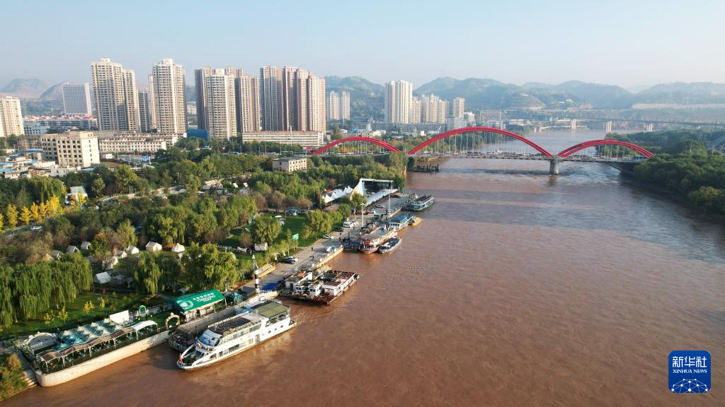 這是位于蘭州市城關(guān)區(qū)黃河北岸的鹽場堡碼頭(10月17日攝,無人機(jī)照片)。新華社記者陳斌攝