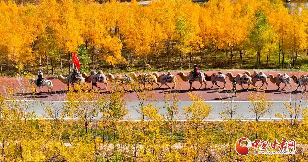 金秋十月,張掖市甘州區(qū)黑河林場萬畝胡楊林迎來流金季節(jié)。10月15日,一支駝隊(duì)行進(jìn)其間,領(lǐng)略這最美的時(shí)光。這片昔日亂石林立、滿目瘡痍的黑河亂石灘,如今已成為6萬畝的城市森林,游人、駝隊(duì)行進(jìn)其中,與金色林海共同構(gòu)成了一幅動(dòng)人的生態(tài)畫卷。
