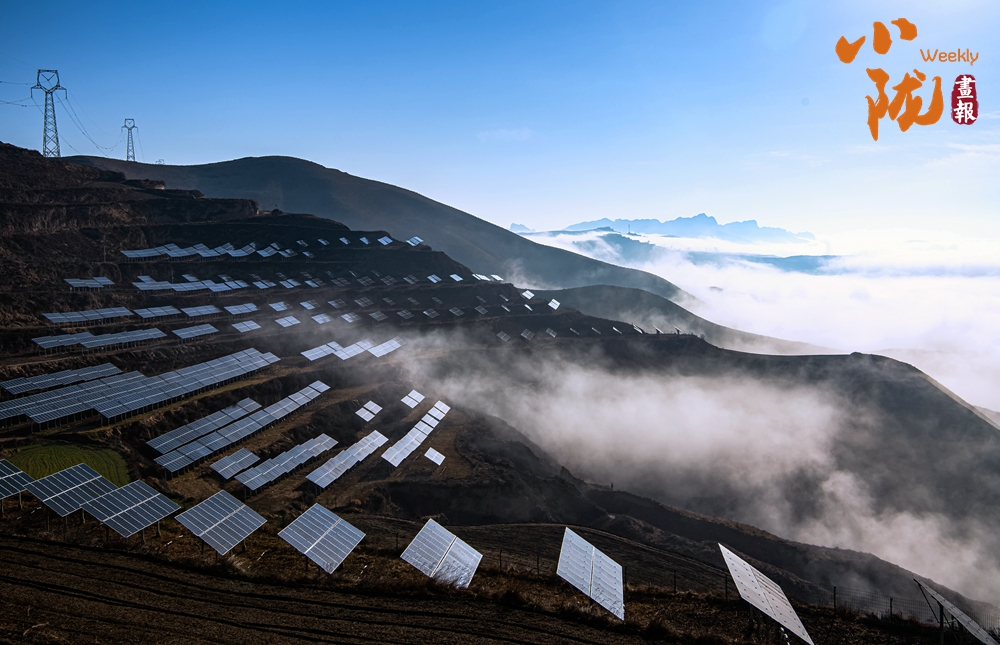 成排的太陽能光伏電板如藍(lán)色鱗片,鱗次櫛比地鑲嵌在山坡上,與天際悠悠的流云、遠(yuǎn)處起伏的山巒相映成趣。科技之美與自然之韻在這里悄然融合,共同繪就出一幅綠色發(fā)展新畫卷。