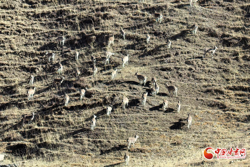 近日,民樂(lè)縣大河口自然保護(hù)站扁都口資源管護(hù)站人員于高海拔區(qū)域日常巡護(hù)時(shí),邂逅一大群巖羊在山坡覓食、奔跑的珍貴場(chǎng)景,巖羊數(shù)量約50只。