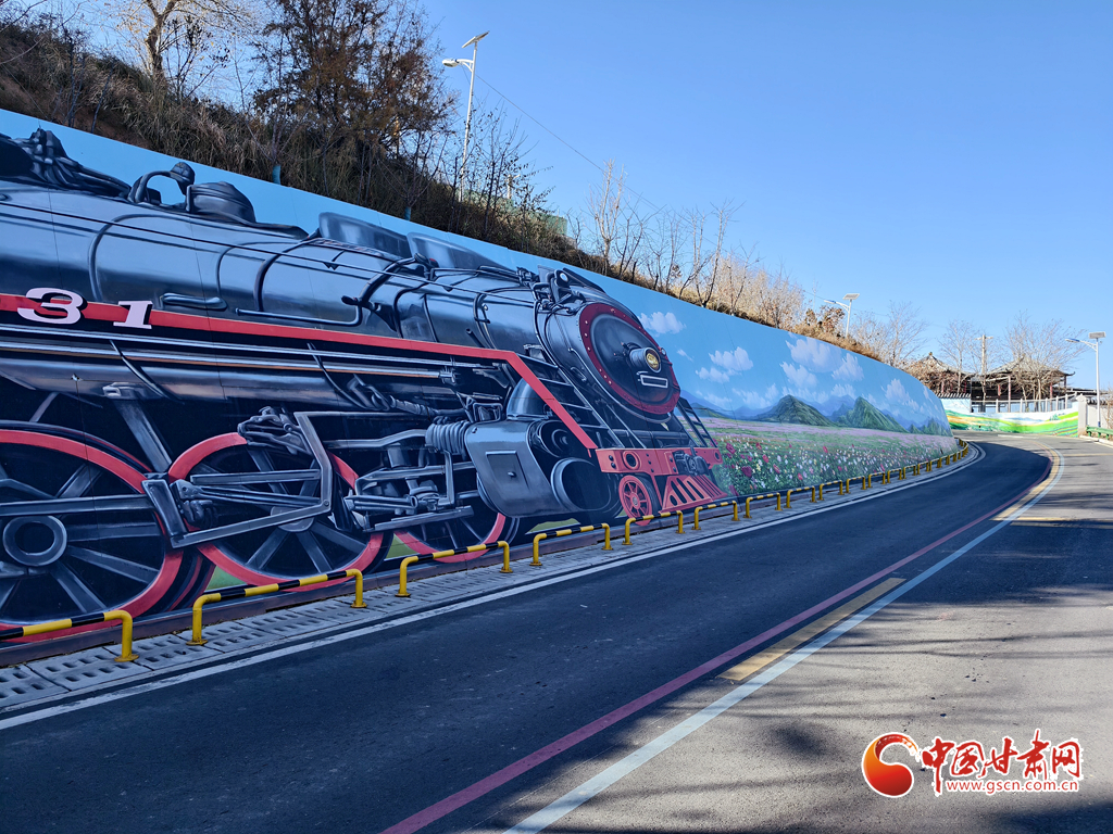 初冬蘭州蘭山,涼意漸濃,“煙雨蘭山”鄉(xiāng)村振興示范帶的童話彩繪卻讓這里成了市民的“造夢(mèng)秘境”。低成本的藝術(shù)改造點(diǎn)亮墻面,連“0931號(hào)”蒸汽火車(chē)手繪也在此煥發(fā)光彩——車(chē)頭暖光里,Q版蘭州瓜果、土撥鼠串聯(lián)成列,宛如“童話專(zhuān)列”載著鄉(xiāng)愁與特產(chǎn)故事,邀人走進(jìn)山間童話。