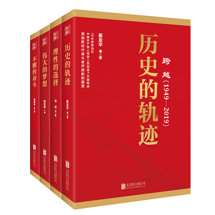 今年正值新中國成立70周年,作為新中國華誕獻禮的著作《跨越》四部曲——《歷史的軌跡》《理性的選擇》《偉大的夢想》《不懈的奮斗》已由崔友平、徐斌、顧保國、董振華等專家學(xué)者編寫完成并出版。本套叢書立足于馬克思主義的立場、觀點和方法,從歷史的維度、理論的維度、實踐的維度和空間的維度去回顧新中國成立70年來實現(xiàn)偉大跨越的歷史軌跡,去分析中國道路理性選擇的自覺自信,去展望中華民族偉大復(fù)興的偉大夢想,去探索通過不懈奮斗走向光輝彼岸的現(xiàn)實路徑,旨在通過學(xué)理論述、案例分析和現(xiàn)實經(jīng)驗,揭示中國共產(chǎn)黨成功密碼的歷史意義和世界意義。本書既是對歷史現(xiàn)實的回顧,又是對歷史經(jīng)驗的總結(jié),從歷史出發(fā)延伸到未來,從藍(lán)圖出發(fā)延伸到實踐,既有深邃的思想內(nèi)涵和理論功底,又有明確的方法論原則,構(gòu)建了一個內(nèi)容豐富、論述嚴(yán)謹(jǐn)、語言通俗的理論體系。