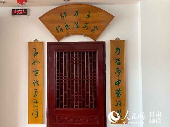 天水市圖書館坐落在藉河之濱,臨流水而擁綠樹,環(huán)境清幽。那是一個雙休日,天氣晴好,記者懷著好奇、敬仰的心情,走樓梯登上了圖書館四樓。特藏室門口上方掛著“邵力子捐書陳列室”扇形木制匾額,左右兩邊掛著木制對聯(lián)“力學廬中藏經(jīng)典,子孫世代惠恩澤”,是集于右任的字。木料呈淡黃色,典雅而洋溢書香之氣。為了滿足記者的愿望,特藏室負責人李東暉犧牲了休息時間,熱情地接待我們并進行認真講解。
