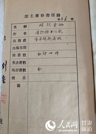 “力學廬藏書”為何保存在天水市?1937年抗日戰(zhàn)爭全面爆發(fā),日機輪番轟炸西安等城市,主政甘肅、陜西6年間自己節(jié)儉日常生活開支所搜購、珍藏的大批珍貴圖書怎樣才能免于戰(zhàn)火?邵力子先生十分焦慮。民國年間著名人士鄧寶珊、馮國瑞多次向邵力子先生“游說”,說明他們的家鄉(xiāng)天水市人文氣息濃厚、又地處西北一隅,屬抗戰(zhàn)后方,藏書環(huán)境較為安全,希望“以之捐贈天水,建館而公諸世”。經(jīng)過慎重考慮,邵力子先生決定將自己在西安的全部“力學廬藏書”運往天水,并由好友、著名學者馮國瑞負責接收、轉運。在那戰(zhàn)火紛飛的年代,要把幾十箱、數(shù)萬冊藏書從西安運到天水,確非易事。李東暉說,在當時陜西省政府主席及秘書長、天水縣長及教育局長等人的協(xié)助下,歷經(jīng)周折、分三次才將這批珍藏轉運成功,當時雇用鹽商的牲口、沿途由鄧寶珊將軍派部隊護送。