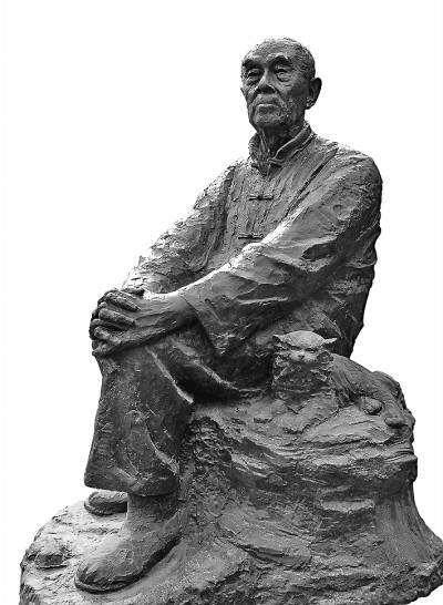 2001年12月,馮其庸先生親自帶領(lǐng)紀(jì)峰去拜訪季羨林先生,從此兩人結(jié)下了深深的緣分。紀(jì)峰為季羨林先生塑像有多種,我最喜歡其中的坐像。季羨林先生一如既往,穿著藍(lán)色中山裝,一輩子的風(fēng)雨之后,季先生修煉到了躲進(jìn)人群識(shí)不得的境界。北大盛傳一則故事:一新生入學(xué),在未名湖畔見(jiàn)到一位工人模樣的老者正散步,就請(qǐng)求老人家?guī)兔匆粫?huì)兒行李,自己要趕緊去辦入學(xué)手續(xù)。老師傅同意了。兩個(gè)小時(shí)之后,學(xué)生趕回來(lái),發(fā)現(xiàn)老師傅在他的行李邊一步不離。直到開(kāi)學(xué)典禮,新生再次見(jiàn)到老者,才知道他是赫赫有名的季羨林先生。季先生抱膝而坐,身邊一只貓兒,也在寧?kù)o遠(yuǎn)望。仔細(xì)端詳季先生的表情,緊閉的嘴唇和專注的眼神,此時(shí)的季先生到底是怎樣的心情?嚴(yán)肅而凝重,沒(méi)有一絲笑意,思想已經(jīng)沉淀如石。即便是著作等身,沒(méi)有換來(lái)心滿意足,依舊心事重重。從佛陀之前,到明天之后,慈悲心閱盡人間苦難,眼望前路,還是沒(méi)有云淡風(fēng)輕。滿懷同情心的季先生,坐定在未名湖畔,如同時(shí)間老人,坐在時(shí)間的盡頭。這座像,季先生生前就十分喜歡,如今安放在先生墓前。
