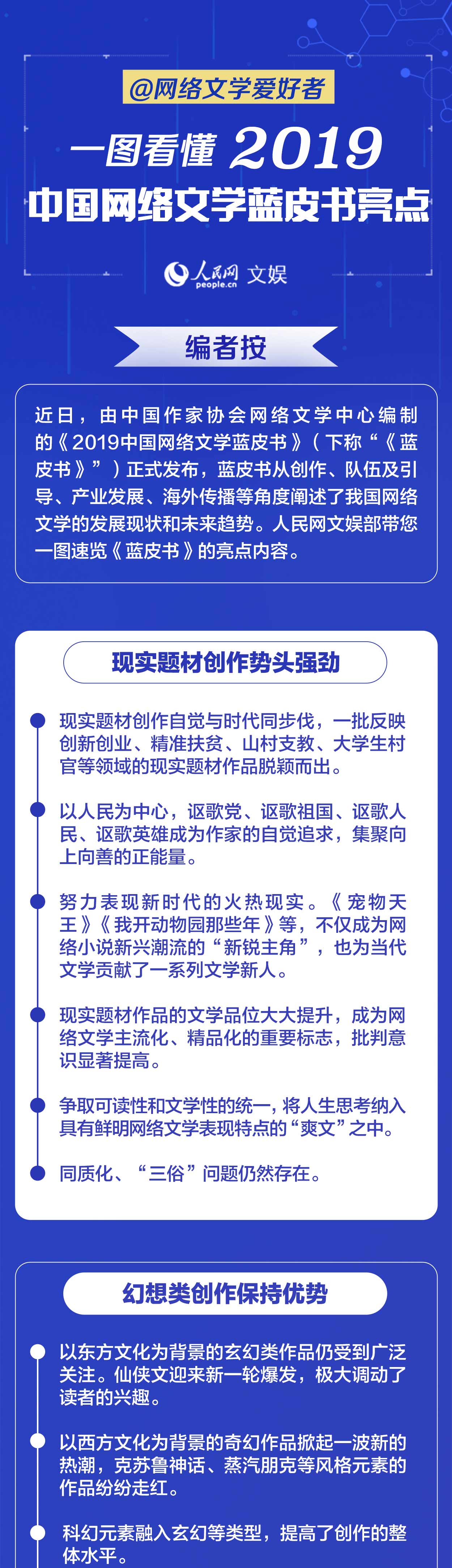 @網(wǎng)絡(luò)文學(xué)愛好者 一圖看懂2019中國網(wǎng)絡(luò)文學(xué)藍(lán)皮書亮點