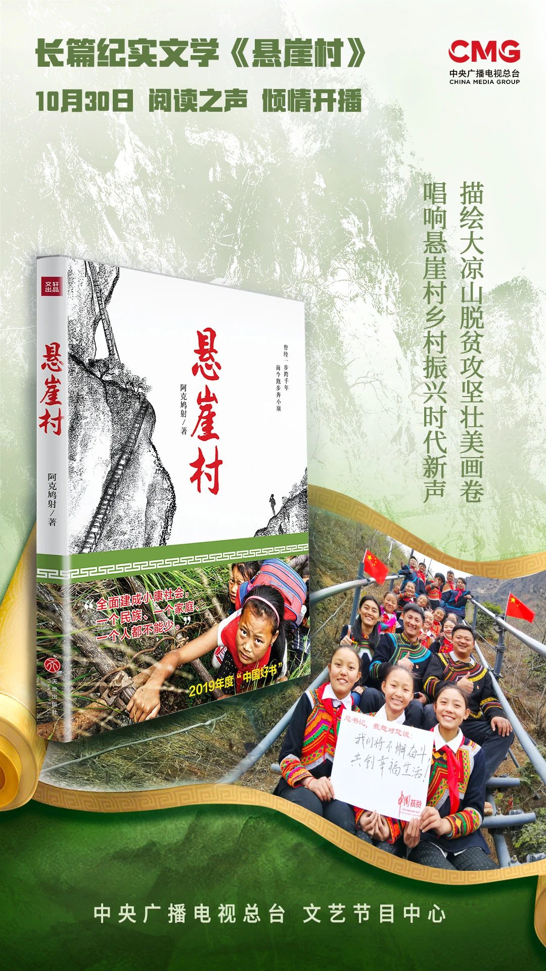 長篇紀(jì)實文學(xué)《懸崖村》于10月30日起在中央廣播電視總臺閱讀之聲開播,同時上線新媒體。