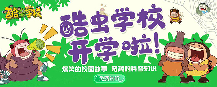 根據(jù)原創(chuàng)昆蟲科普知識爆笑校園漫畫改編的《酷蟲學(xué)校科普有聲故事》,以爆笑幽默的校園故事、新奇有趣的科普知識、廣播劇標(biāo)準(zhǔn)的精心制作等特點(diǎn),激發(fā)小讀者對大自然的熱愛,建立生態(tài)文明的宏觀觀念。
