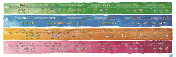 每一個節(jié)氣再劃分為三候……這三候分別以幾個字的形容,分成初中末三段對應(yīng)置入年歷中,文字中可感受到早年中國黃河流域的景物。