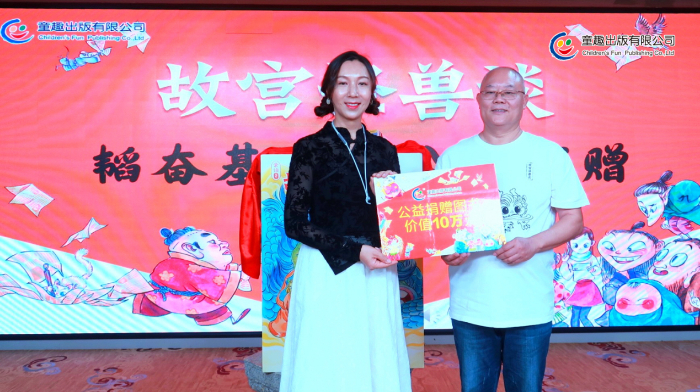 分享會上,童趣出版有限公司向韜奮基金會捐贈了《故宮怪獸談》及世界名著等價值10萬碼洋的作品。插畫師譚諾專門為韜奮基金會創(chuàng)作了公益閱讀畫作,永久免費授權(quán)韜奮基金會作為公益宣傳使用。