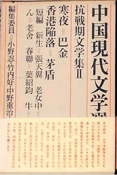 日文《中國現(xiàn)代文學(xué)選集》第8卷,日本平凡社1963年版
