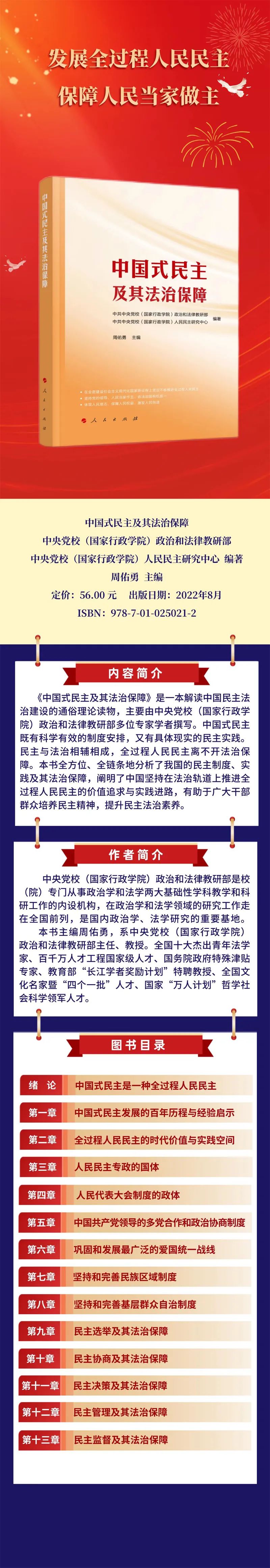 【書香隴原 圖書推薦】《中國(guó)式民主及其法治保障》:解讀中國(guó)民主法治建設(shè)的通俗理論讀物