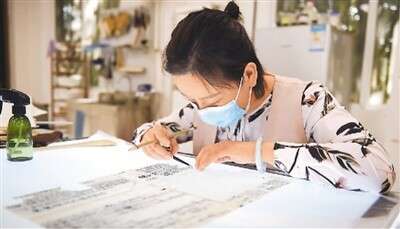 安徽博物院文物科技保護(hù)中心紙質(zhì)文物修復(fù)室的工作人員對古籍文物進(jìn)行修復(fù)。新華社記者 周 牧攝