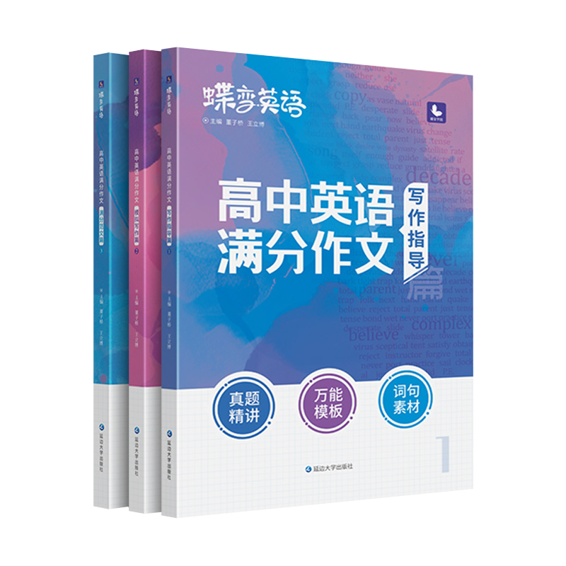 《蝶變英語作文套裝》共3本:分別是寫作指導,模擬寫作和滿分作文。其指導內容細分為提綱作文,圖表作文,圖畫作文,開放作文,常用表達。寫作指導部分對書信,通知,發(fā)言稿,混合型應用文,都有詳細的指導內容。