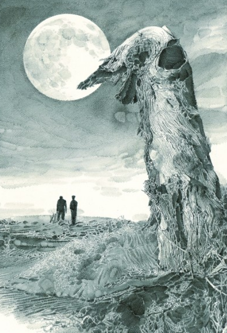 一輪滿月在大漠天空中懸浮著,兩個人行至遠(yuǎn)方的沙地,并肩好似在暢談著什么。刊登在《讀者》2019年第五期的這幅插圖,出自魯迅美術(shù)學(xué)院教授李晨之手,他以寫實的素描手法為陳忠實的文章《毛烏素沙漠的月亮》配圖,畫面細(xì)膩而充滿想象空間。
