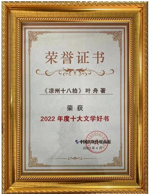 葉舟長(zhǎng)篇小說(shuō)《涼州十八拍》榮獲春風(fēng)悅讀榜年度白銀獎(jiǎng) 并入選2022年度十大文學(xué)好書(shū)