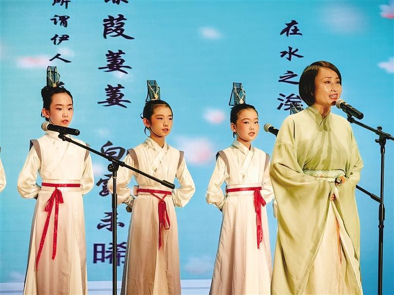 在《壯美山河絢麗詩(shī)篇》中,《詩(shī)經(jīng)·秦風(fēng)·蒹葭》在蘭州市東郊學(xué)校曹林老師和方培丞等12位小朋友的演繹下,古風(fēng)古韻氣息撲面而來(lái)。