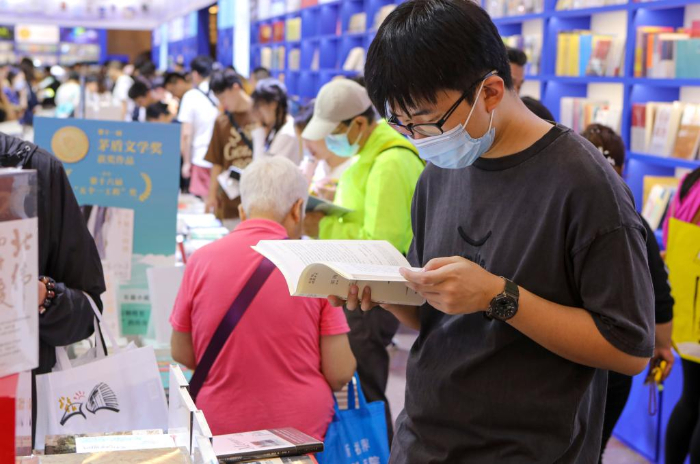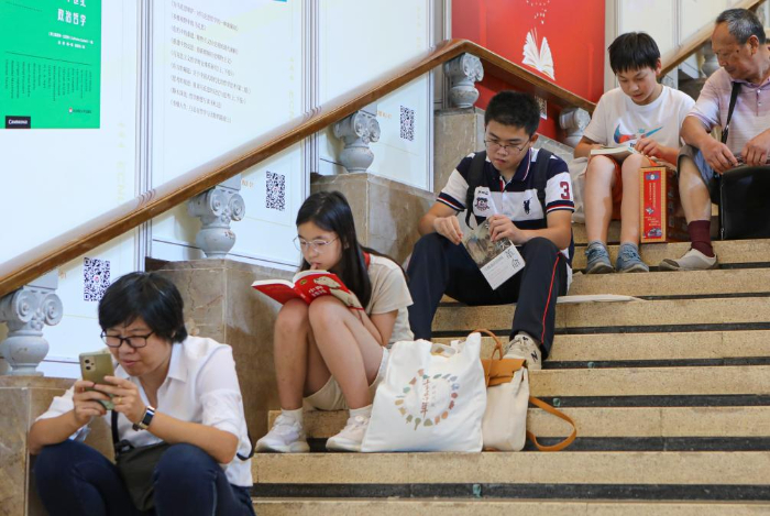 8月16日,讀者在2023上海書展現(xiàn)場(chǎng)閱讀。