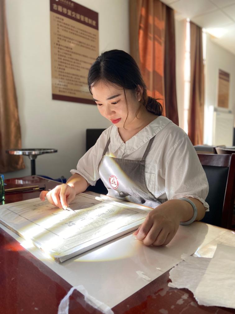 “最有成就感的事就是為每一片碎片找到復(fù)原的位置。”耿寧笑稱,古籍修復(fù)就像是“修行”,要有獨(dú)坐“冷板凳”的精神,還要有強(qiáng)烈的責(zé)任感,“匠心”二字就是最好的詮釋。