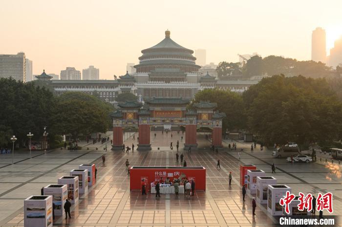 12月25日,重慶人民廣場(chǎng),《什么是重慶》新書(shū)首發(fā)外展現(xiàn)場(chǎng),市民正在參觀。中新網(wǎng)記者何蓬磊 攝