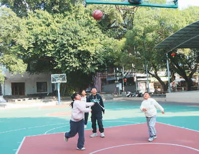 孩子們在村里籃球場打球。記者 康 樸攝