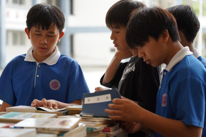 保山市隆陽(yáng)區(qū)潞江鎮(zhèn)民族中學(xué)的學(xué)生們?cè)谛侣涑傻膱D書(shū)館看書(shū)(6月21日攝)。新華社發(fā)