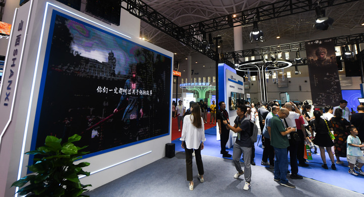 數(shù)博會上,國產(chǎn)游戲《黑神話:悟空》備受矚目。山西展團(tuán)以游戲中“悟空”路線為主題,重點展示了一批介紹山西古建筑、歷史文化遺產(chǎn)的出版物,“悟空拍照區(qū)”成了“熱門打卡地”。