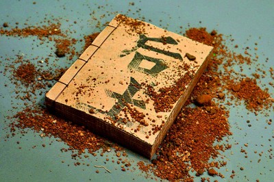 試看鄒強的作品《歷史的痕跡》,該書通過對諸多中國古代遺跡的刻畫,展現(xiàn)了中華民族的厚重歷史。為了凸顯書籍的斑駁、古樸之感,藝術家采用了歷經(jīng)十數(shù)年風吹日曬的舊書頁碎片作為封面,其上布滿的苔蘚和嵌入其中的桂花枯枝皆是自然形成,巧妙地將“時間”這一概念進行了具象化呈現(xiàn)。葉盈盈的《后土之間》形如一方土塊,當讀者翻開書頁,便會聞到由特殊再生紙所散發(fā)的草木香氣,仿若置身自然鄉(xiāng)野。李巖的《逐夢寰宇問蒼穹》則以透明亞克力材料作為書頁,彰顯出濃郁的科技感與未來感。這些可觸可感的材質(zhì)細節(jié)不僅與書中內(nèi)容形成呼應,更為作品帶來了十足的藝術張力。