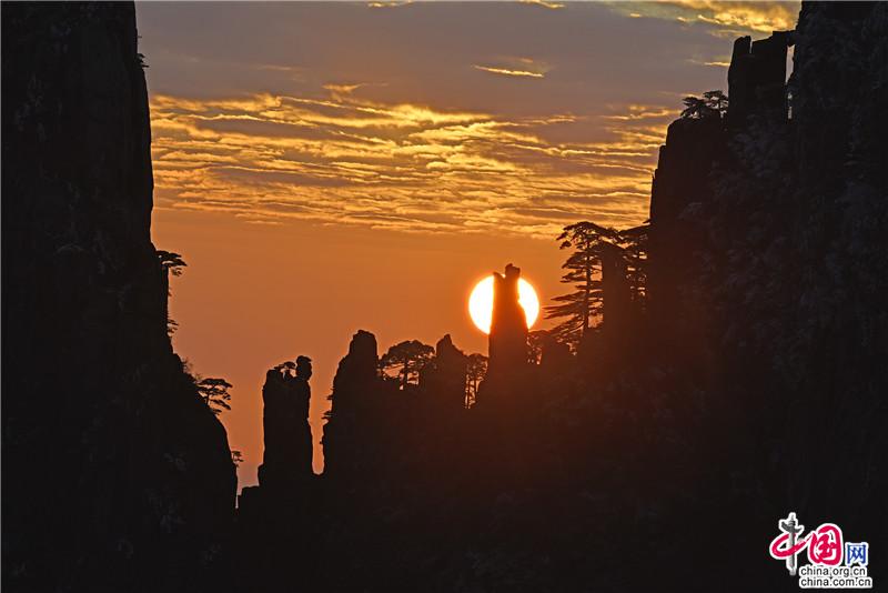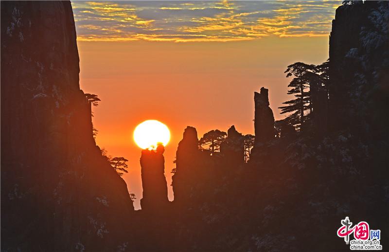 【點(diǎn)睛】新年伊始,黃山風(fēng)景區(qū)迎接今年的第一縷陽(yáng)光,在一片歡呼聲中太陽(yáng)跳出了地平線(xiàn)來(lái)到了黃山之巔。