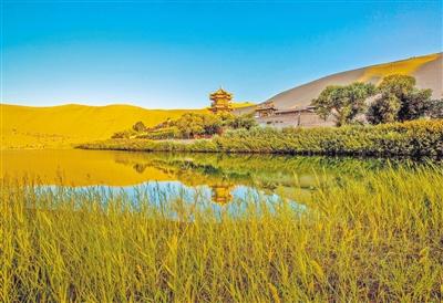 月牙泉處于鳴沙山環(huán)抱之中,其形酷似一彎新月而得名。古稱沙井,又名藥泉,水質(zhì)甘洌,沙不進(jìn)泉,故稱“月泉曉澈”。
