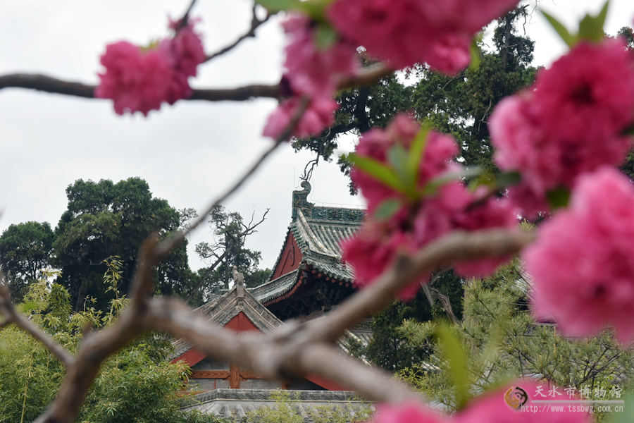 伏羲廟內的牡丹主要分布在大門東側的樂善院、先天殿西側的來鶴軒旁,桃花和繡球花主要生長在后院。這里冬天有臘梅花、結香花,春天有牡丹花、桃花,夏天有荷花等。四季花香、全年常青,讓伏羲廟景區(qū)的古建與園林花卉相得益彰,美輪美奐。