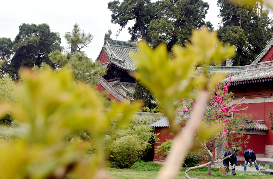 中國甘肅網4月16日訊 據(jù)新天水報道 4月14日,天水伏羲廟內兩位園林工人正在后院修剪草坪花木。近日,伏羲廟內紅色的牡丹、粉紅的桃花、綠色的繡球花盛開,一派生機盎然的景象。