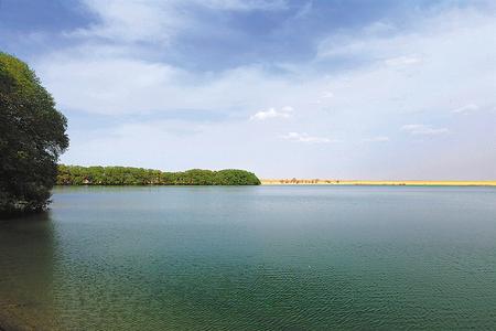 在渥洼池畔舉目遠(yuǎn)眺,在阿爾金山皚皚白雪的映襯下,偌大的渥洼池顯得安靜祥和,廣闊的水域就像一面鏡子,鑲嵌在大漠深處,在陽(yáng)光的折射下顯得格外深邃而內(nèi)斂。渥洼池畔茂密的灌木林和高大密集的蘆葦蕩,將一汪湖水浸染的泛著黛綠,蘆葦和灌木在湖水滋潤(rùn)下郁郁蔥蔥,高低錯(cuò)落有致,大有阡陌縱橫之勢(shì)。西岸不遠(yuǎn)處,南北迤邐著一座兩公里有余的沙坡頭,猶如一條盤旋的黃龍,亙?cè)诤奈鬟厯u頭擺尾,它曾經(jīng)以每年兩至三米的速度,肆無(wú)忌憚地向渥洼池水域逼進(jìn)。不過(guò),在陽(yáng)關(guān)保護(hù)區(qū)的精心培育下,一片密集的蘆葦,已經(jīng)爬到了沙梁頂上,將這條黃龍死死地鎖在原地,動(dòng)彈不得。