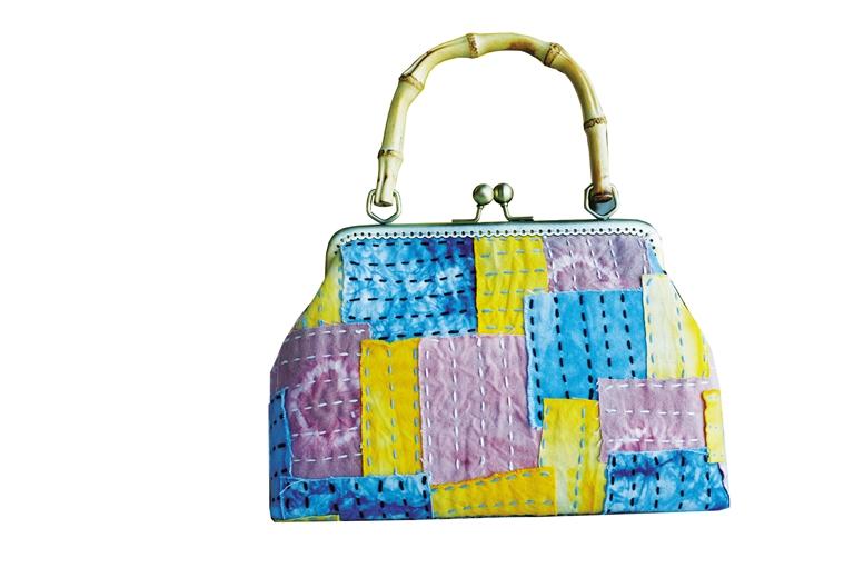以蓼藍葉等染材染色的藍染布及其他植物性染料為原料,運用隴西刺繡等手法繪制出各類風(fēng)格的圖案,配以精致口金、各種風(fēng)格的時尚口金包,既具有觀賞性,又具有實用性,色彩素雅、時尚大方。
