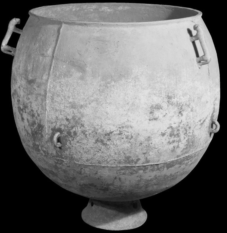 這件青銅鍑的鑄造帶著游牧民族的特點,先分后合, 分塊鑄造然后焊接而成。這是一件罕見的秦末漢初匈奴鑄造的大型青銅鍑,其時間大概在戰(zhàn)國到漢初。