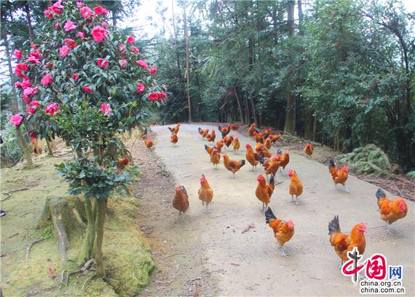 茶花具有“唯有山茶殊耐久,獨能深月占春風(fēng)”的傲梅風(fēng)骨,又有“花繁艷紅,深奪曉霞”的凌牡丹之鮮艷,因此自古以來就是極富盛名的木本花卉,在唐宋兩朝達(dá)到了登峰造極之境,直到十七世紀(jì)引入歐洲后,造成轟動,也因此獲得“世界名花”的美名。九龍街道牛街居委會小寨土雞生態(tài)產(chǎn)業(yè)園嬌艷的茶花給人一種神圣感,同時被賦予了一種原始的信仰:山茶是春天的神木,是春天的圣樹。置身九龍小寨土雞生態(tài)產(chǎn)業(yè)園,來一場與森林的浪漫邂逅,恍如仙境。園里有枇杷林、櫻桃林、楊梅林、梨樹林、紅豆杉林、柏樹林、椿樹林、油桃林、核桃林、灌木林以及草莓園、蔬菜園、山茶花園、荷花園,樹下是一群群羽毛鮮亮的土雞悠閑地覓食,好一幅田園風(fēng)景畫!