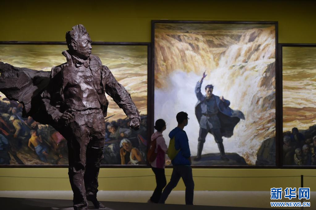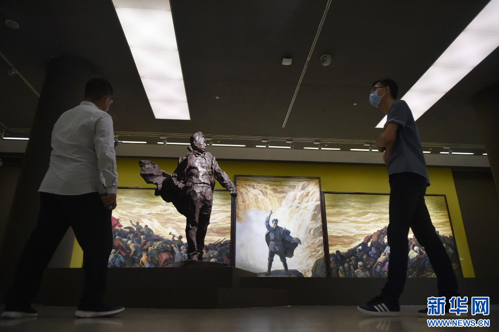 8月14日,觀眾在中國(guó)美術(shù)館參觀展出作品《大河史詩(shī)》。 新華社記者 魯鵬 攝