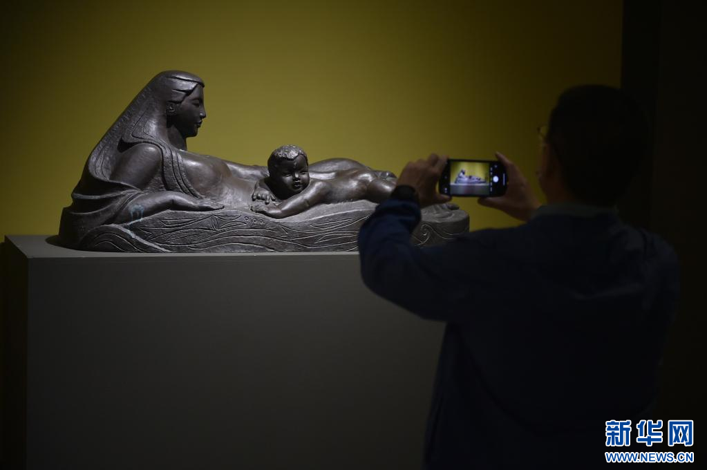 8月14日,參觀者在中國(guó)美術(shù)館拍攝展出作品《黃河母親》。 新華社記者 魯鵬 攝