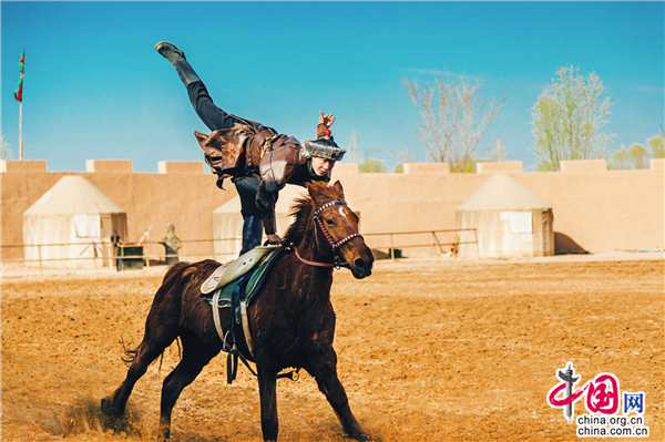 除此之外,游客在景區(qū)擂臺(tái)處不僅能夠觀看驚險(xiǎn)刺激的市井雜耍,還有每天兩場(chǎng)的樂隊(duì)表演不容錯(cuò)過。擂臺(tái)不遠(yuǎn)處就是今年4月1日全新推出的實(shí)景馬戰(zhàn)《烽火西夏》演出場(chǎng)地,看完雜耍的游客可直接到馬場(chǎng)觀看接下來(lái)的演出。